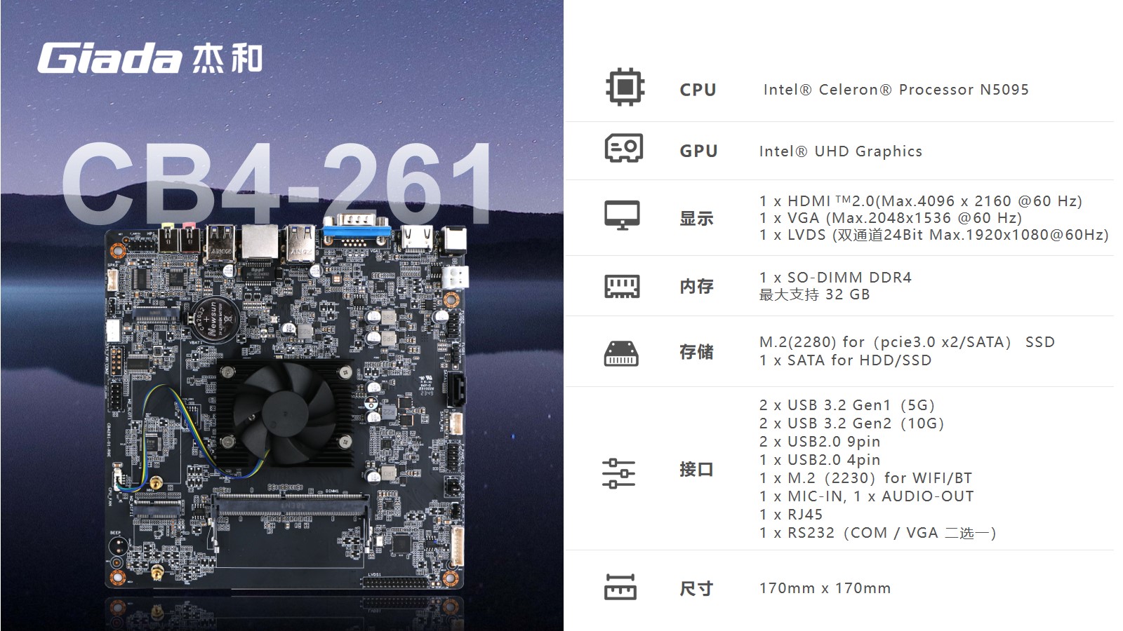 米兰体育科技CB4-261尺寸仅有170x170mm,小而精巧。搭载N5095芯片,该芯片采用10nm制程技术,四核心设计,支持Windows 、Linux系统,可满足多种终端机应用场景的需求,如信息查询、基本数据处理等。