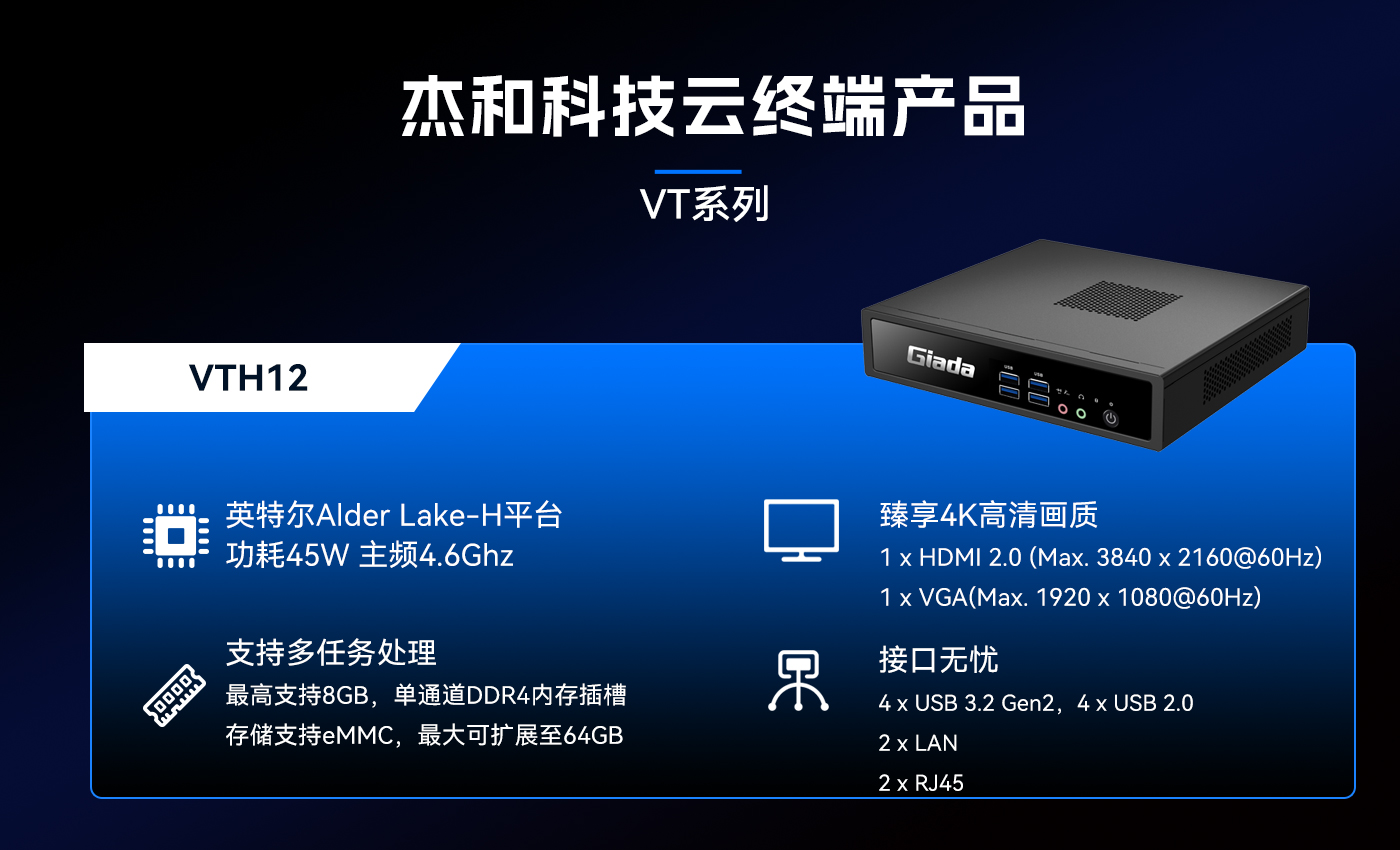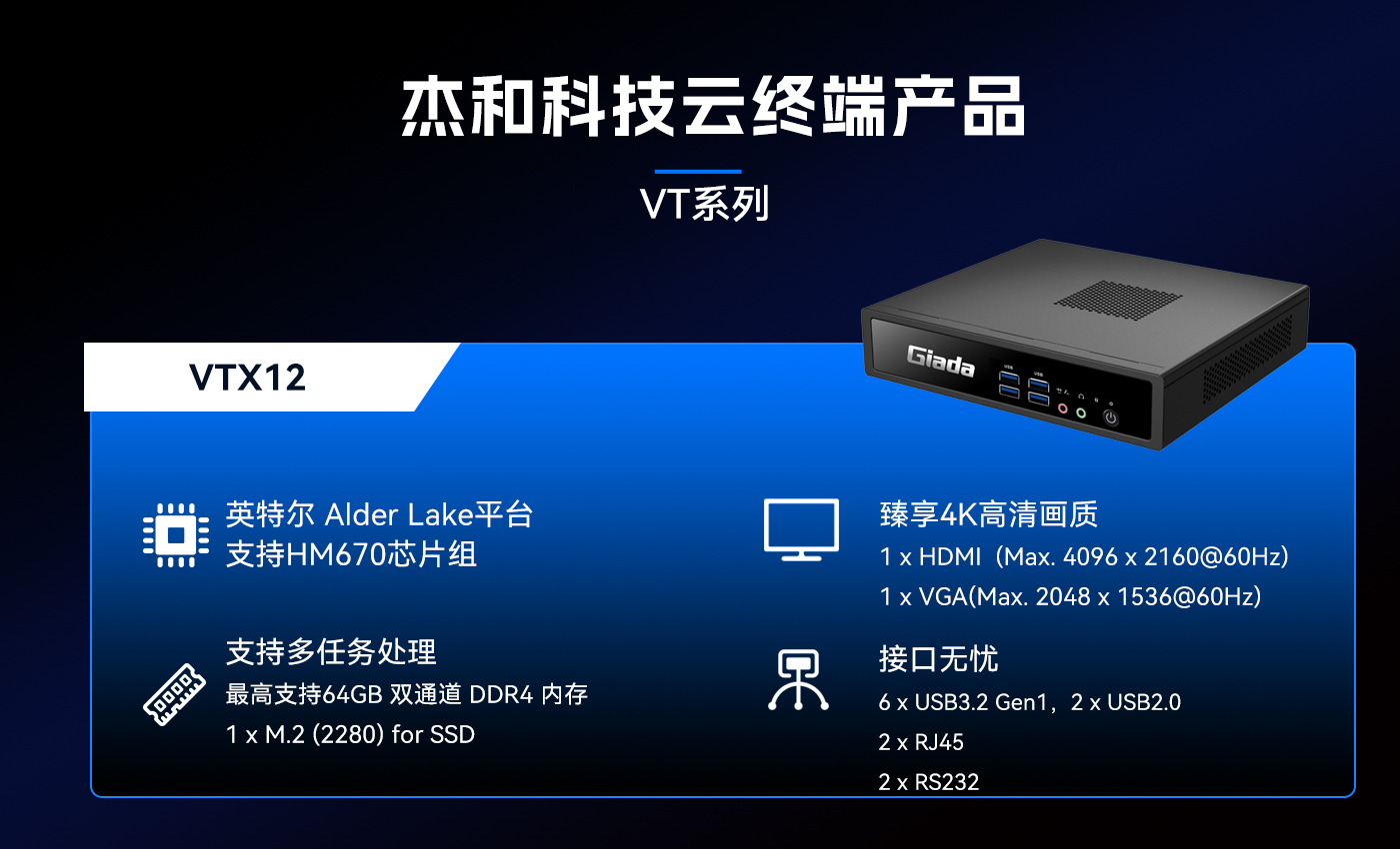 除此之外米兰体育科技云终端VT系列产品线还提供多样化的硬件配置选择,涵盖多种处理器架构、内存容量、存储设备和接口类型,满足不同应用场景的个性化需求。