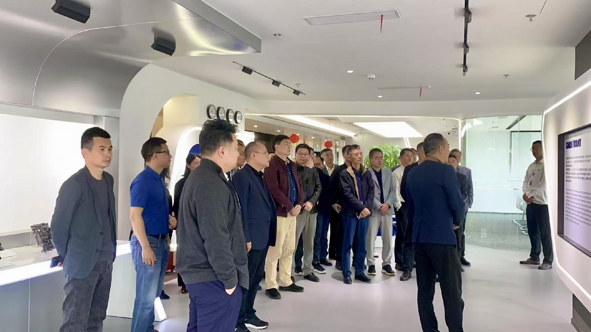 作为东道主,米兰体育科技带领与会嘉宾参观数字化展厅,重点呈现企业历程、AI算力产品以及一系列自主研发成果。展厅内多项专利技术及行业解决方案,直观展现了企业在智能制造、智慧零售等领域的技术沉淀,为后续研讨提供了实践参考。