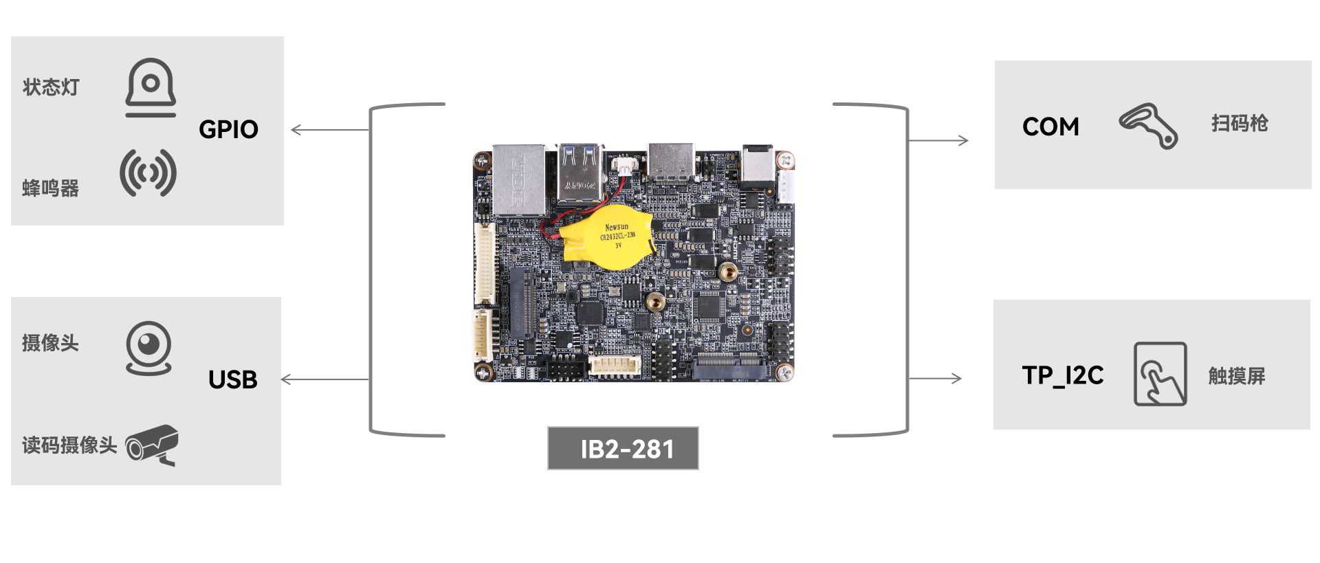 米兰体育科技工业主板 IB2-281 提供灵活的主控平台选择与丰富的接口资源,适用于智能分拣系统嵌入应用: