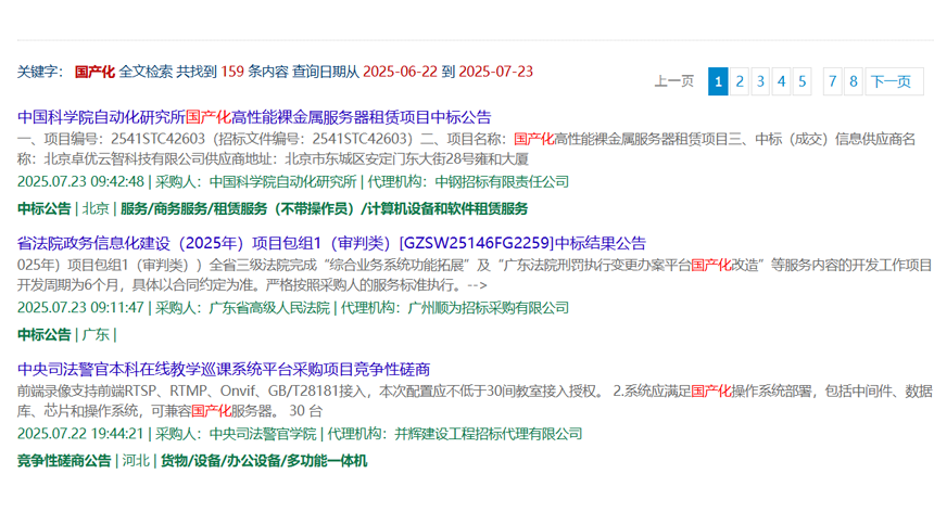 打开中国政府采购网,输入关键词“信创”“国产化”,会发现大量政府采购文件上,凡是涉及计算机、服务器等信息化设备的项目,几乎都明确提出需采用国产CPU(如飞腾、兆芯等)、国产操作系统(如麒麟、统信UOS等),以及国产数据库和中间件平台。